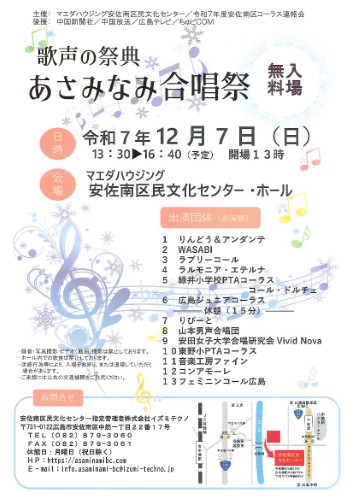 | 問い合わせ先 | 安佐南区民文化センター 指定管理者:株式会社イズミテクノ TEL:082−879−3060