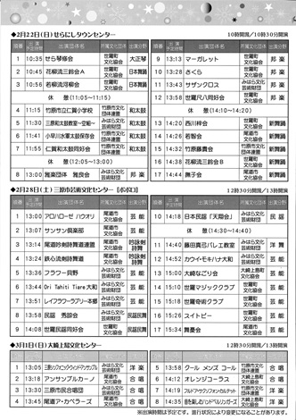 西川梓会/世羅町文化協会、若智会/尾道市文化協会、竹原藤貴会/竹原市文化団体連盟、花柳流三鈴会B/世羅町文化協会、撫子会/尾道市文化協会  (出演順)