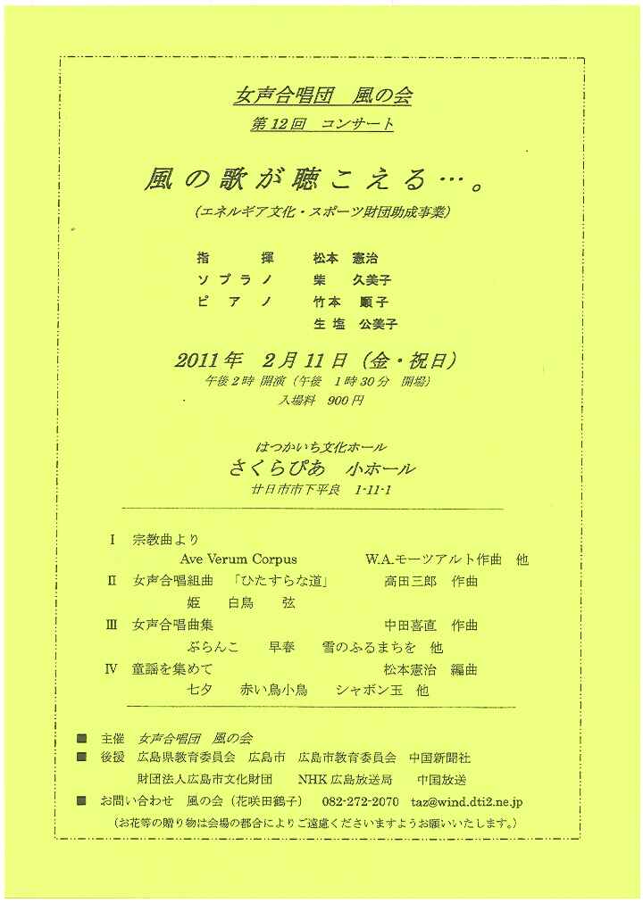 女声合唱団 風の会 第12回コンサート 風の歌が聴こえる・・・。