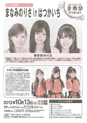 はつかいち音楽祭オープニングライブ まなみのりさ in はつかいち