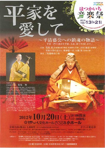 出演:荒尾 努(平家琵琶)、浜村敏彦(笛奏者)、宮島太鼓の皆さん、夢俥髷一代大橋実(友情出演)