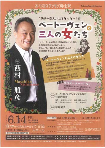 人気俳優・西村雅彦の語りとアンサンブル金沢の弦楽四重奏団の珠玉の演奏でベートーヴェンの謎に迫る!