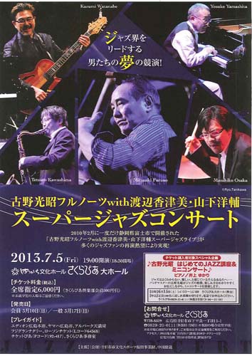 2010年2月に一度だけ静岡県富士市で開催された「古野光昭フルノーツwith渡辺香津美・山下洋輔スーパージャズライブ」が多くのジャズファンの再演熱望により実現! |