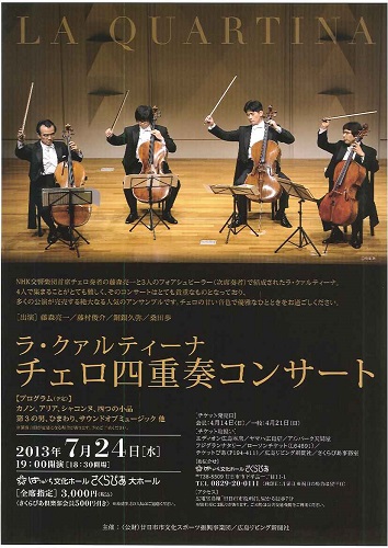 NHK交響楽団首席チェロ奏者の藤森亮一と3人のフォアシュピーラー(次席奏者)で結成されたラ・クァルティーナ。