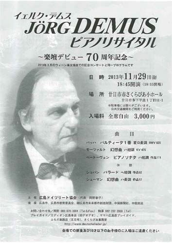イェルク・デームス ピアノリサイタル〜楽壇デビュー70周年記念〜