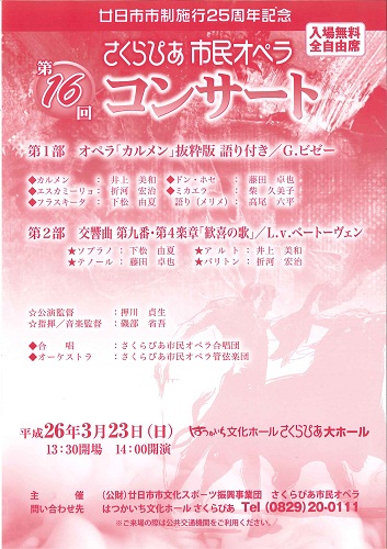 合唱:さくらぴあ市民オペラ合唱団、 オーケストラ:さくらぴあ市民オペラ管弦楽団 |