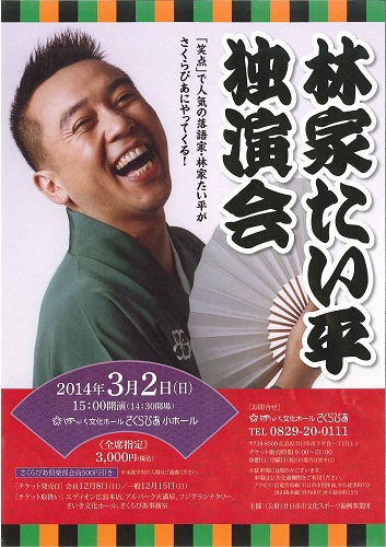 「笑点」で人気の落語家・林家たい平がさくらぴあにやってくる!