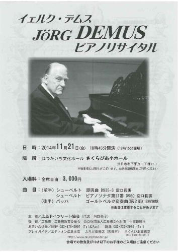 曲目:即興曲D935-3変ロ長調(シューベルト)、ピアノソナタ第21番D960変ロ長調(シューベルト)、ゴールドベルク変奏曲(第2部)BWV988(バッハ)