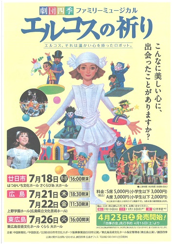 劇団四季広島オフィス 082−503−3411(土日祝休) |