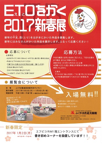 新年の干支、酉(とり)をはがきにかいた作品を展示