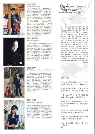 赤津眞言(ヴァイオリン) 鳥生真理絵(ヴァイオリン) 武澤秀平(チェロ、ヴィオラ・ダ・ガンバ) 鎌田茉帆(チェンバロ)