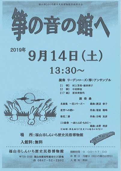 福山市しんいち歴史民俗博物館箏曲演奏会 箏の音の館へ