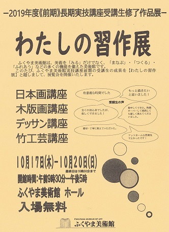このたび、ふくやま美術館実技講座前期の受講生の成果を【わたしの習作展】と題しまして、展覧会を開催いたします。