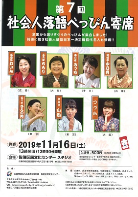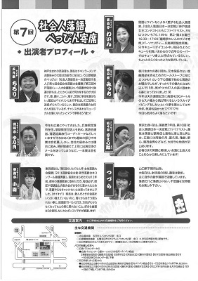葡萄亭わいん(広島) 五月家ちろり(大阪) 春日家みっち(香川) 満福亭ゆ乃月(兵庫) 孤々亭さえの助(東京) 参遊亭小遊(東京) つづら(大阪) |