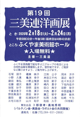 ふくやま美術館で絵を学ぶ三グループ(パルテノン会・美路会・ラボルト会)の有志による合同作品展