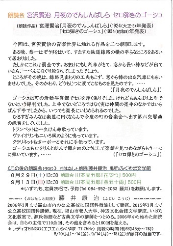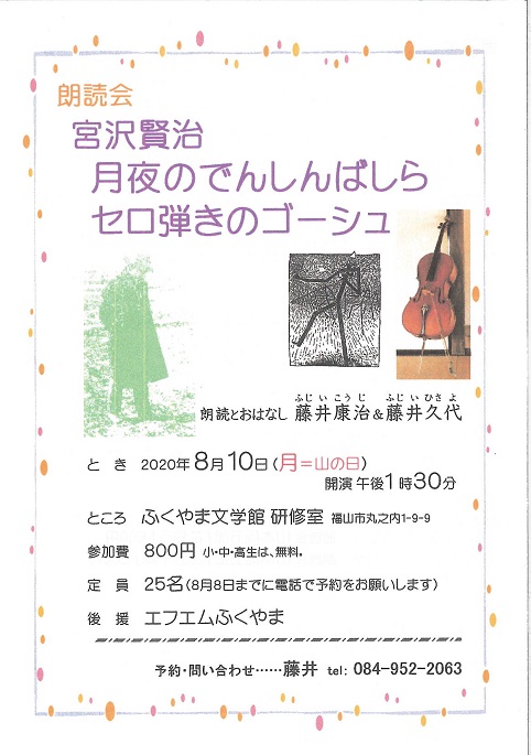 朗読会 宮沢賢治「月夜のでんしんばしら」「セロ弾きのゴーシュ」