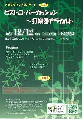 あきクラシックコンサート Vol.206 ビストロ・パーカッション〜打楽器アラカルト(中止)