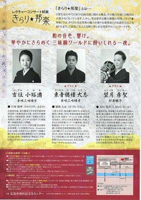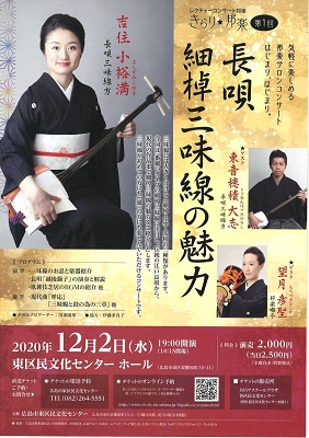 レクチャーコンサート邦楽 きらり邦楽 第1回 長唄細棹三味線の魅力