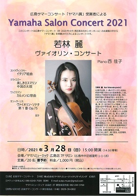 広島サマーコンサート「ヤマハ賞」受賞者による Yamaha Salon Concert 2021 若林麗 ヴァイオリン・コンサート