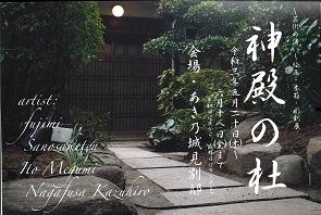 神秘的で時代を超えて感じていただける作品を、あき乃城見別邸そのものを神殿の杜へ誘う空間へと展示します。