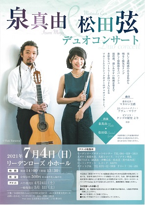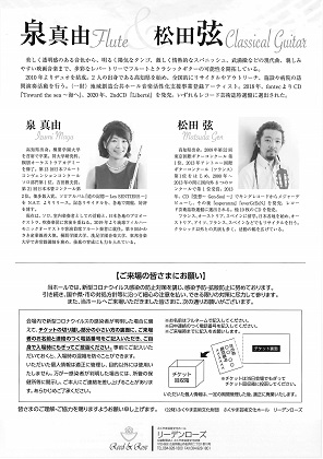 現代曲、親しみやすい映画音楽まで、多彩なレパートリーを持つ2人による、フルートとクラシックギターのデュオコンサート。