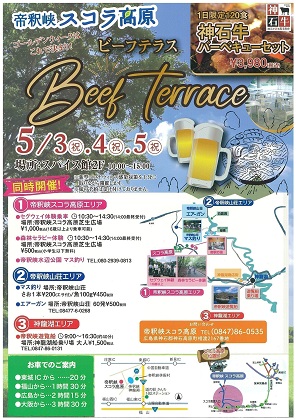 スパイス館2階オープンテラスで、神石牛が味わえる「ビーフテラス」を開催。