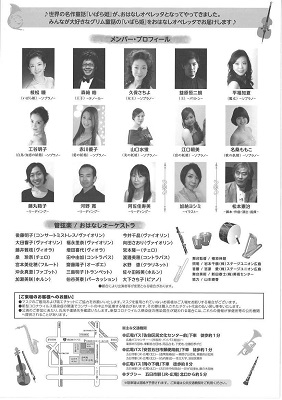 枝松 瞳(いばら姫)ソプラノ、森崎 晧(王子)テノール、久保さちよ(女王)ソプラノ、益原恒二朗(王)バリトン、平福知夏(魔女)ソプラノ、工谷明子(白鳥/知恵の妖精)ソプラノ、赤川優子(愛の妖精)ソプラノ、山口水蛍(美の妖精)ソプラノ、江口朝美(富の妖精)ソプラノ、名桑ももこ(歌の妖精)ソプラノ、藤丸範子(リーディング)、河野 寛(リーディング)、阿佐佳寿美(リーディング)、加納ヨシミ(イラスト)、松本憲治(脚本・作曲・演出・指揮)