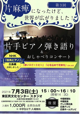 第3回 片麻痺になったけど、世界が広がりました!片手ピアノ弾き語り&おしゃべりコンサート