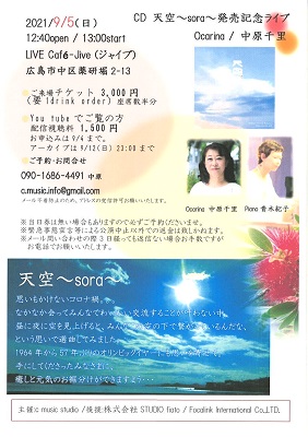 CD 天空〜sora〜発売記念ライブ オカリナ 中原千里