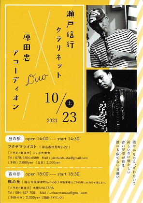 瀬戸信行 クラリネット 原田忠 アコーディオン デュオ 夜の部