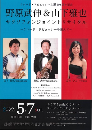 クロード・ドビュッシー生誕160周年記念 野原武伸&山下雅也 サクソフォンジョイントリサイタル