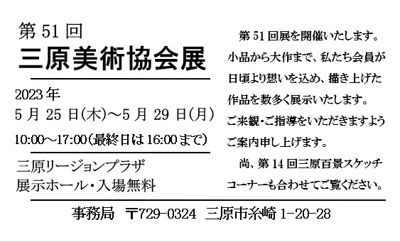 三原美術協会事務局(岡本博実) 0824−36−6200 |