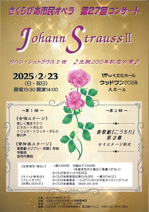 さくらぴあ市民オペラ 第27回コンサート ヨハン・シュトラウスII世♪生誕200年記念公演♪