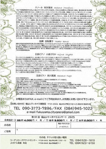福山シティオペラ事務局、リーデンローズチケットセンター、スガナミ楽器本店 |