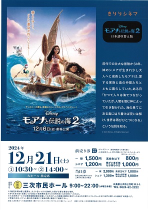 ※友の会1会員につき2枚まで前売券料金から100円引き(三次市民ホールのみ)
