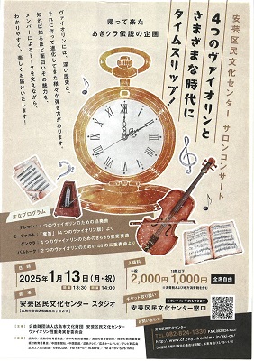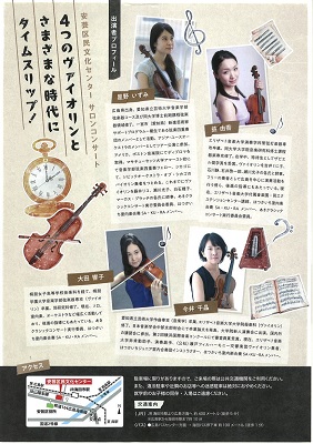 安芸区民文化センター サロンコンサート 4つのヴァイオリンとさまざまな時代にタイムスリップ!
