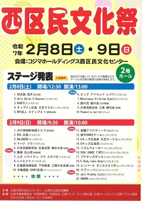 西区内で活動しているダンスや舞踊などのサークルが日頃の練習の成果を発表します。 |