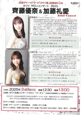 広島サマーコンサート「カワイ賞」受賞者によるカワイ サロンコンサート2025 齊藤優奈&加藤礼愛