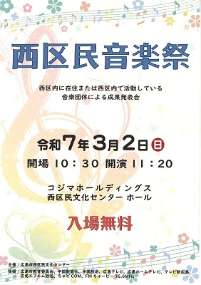 西区内に在住または西区内で活動している音楽団体による成果発表会 |