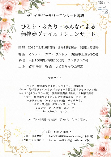 ツキイチギャラリーコンサートin尾道 ひとり・ふたり・みんなによる無伴奏ヴァイオリンコンサート