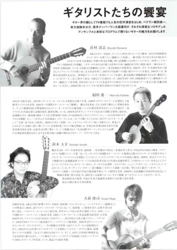 ソロやデュオ,アンサンブルと多彩なプログラムで限りないギターの魅力をお伝えします。 |