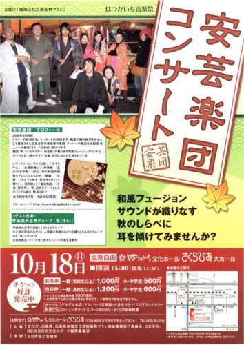 ドラマーの折田吉弘、キーボードの折田栄子、篠笛の梶川純司を中心として結成された広島在住の音楽家の集団。