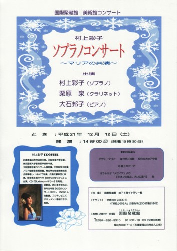 国際聚蔵館 美術館コンサート「村上彩子ソプラノコンサート〜マリアの共演〜」