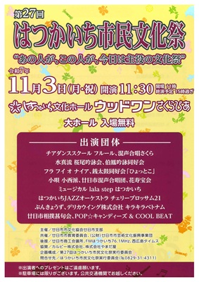 はつかいち市民文化祭実行委員会 0829ー31ー4311 |