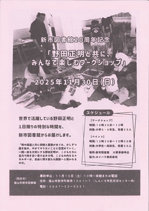福山市新市図書館20周年記念「野田正明とともに、みんなで楽しむワークショップ」