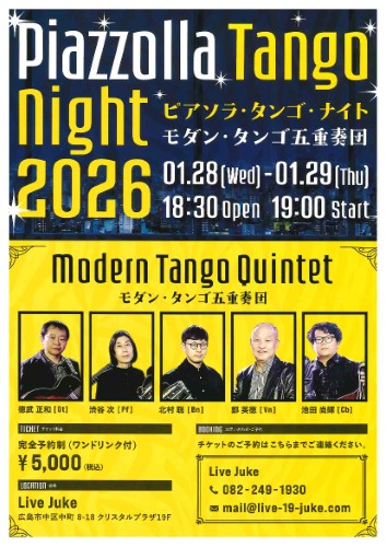 ピアソラ・タンゴ・ナイト2026 モダン・タンゴ五重奏団
