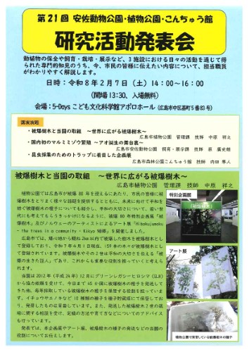第21回 安佐動物公園・植物公園・こんちゅう館「研究活動発表会」