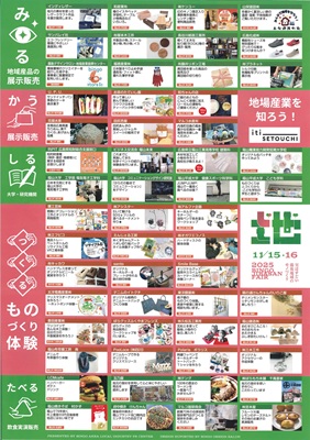 みる・・地域産品の展示/かう・・展示/しる・・大学・研究機関/つくる・・ものづくり体験/たべる・・飲食実演
