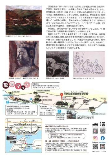 油彩画をはじめ、水墨画や陶芸作品のほか、能の動きを一瞬一瞬素早くとらえたスケッチも展示します。あわせて、滞欧中に撮影したさまざまな国の写真や、造形に魅了され収集したグリコのおもちゃも紹介します。 |