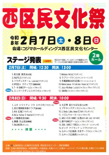 西区内で活動しているダンスや舞踊などのサークルが日頃の練習の成果を発表します。